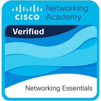 Cisco nəyi təsdiqləyir: Cisco təsdiqlənmiş nişan sahibinin Networking Essentials kursunu müvəffəqiyyətlə bitirdiyini və bu tələbə səviyyəli etimadnaməni qazandığını təsdiq edir. Nişan sahibi IP ünvanlaşdırması, şəbəkə protokolları, OSI və TCP/IP modelləri daxil olmaqla şəbəkə anlayışları haqqında fundamental biliklərə malikdir, ev simsiz şəbəkələrini və Cisco cihazlarını konfiqurasiya edə, əsas şəbəkə bağlantısı problemlərini həll edə bilir və əsas kibertəhlükəsizlik təhdidləri, zəiflikləri və təhlükəsiz giriş nəzarəti mexanizmlərini anlayır.